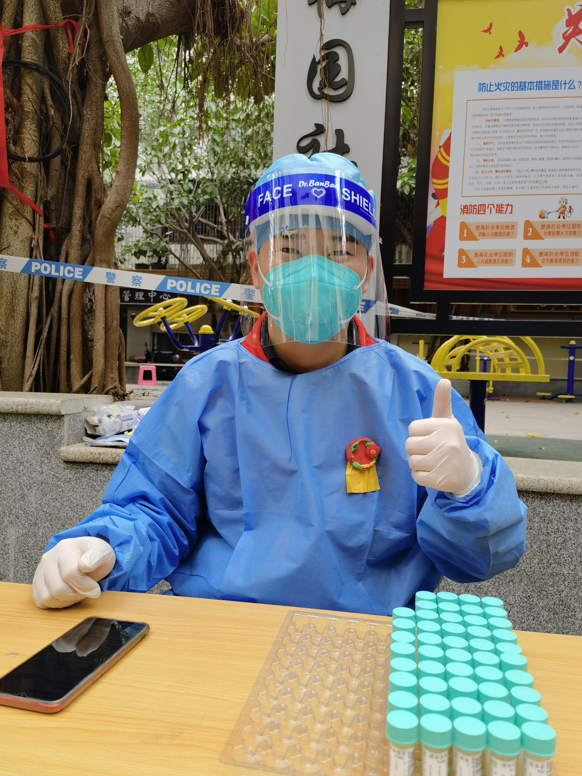 疫情面前,一个号召意味着一份担当,一个需要代表着一份守护。在梅园社区核酸检测区,每天都有一个可爱的小女孩送来一个小礼物——上面写着“我爱中国”“加油中国”字样自制“徽章”,她洋溢着笑容对大家说:“谢谢叔叔阿姨,你们辛苦了。”