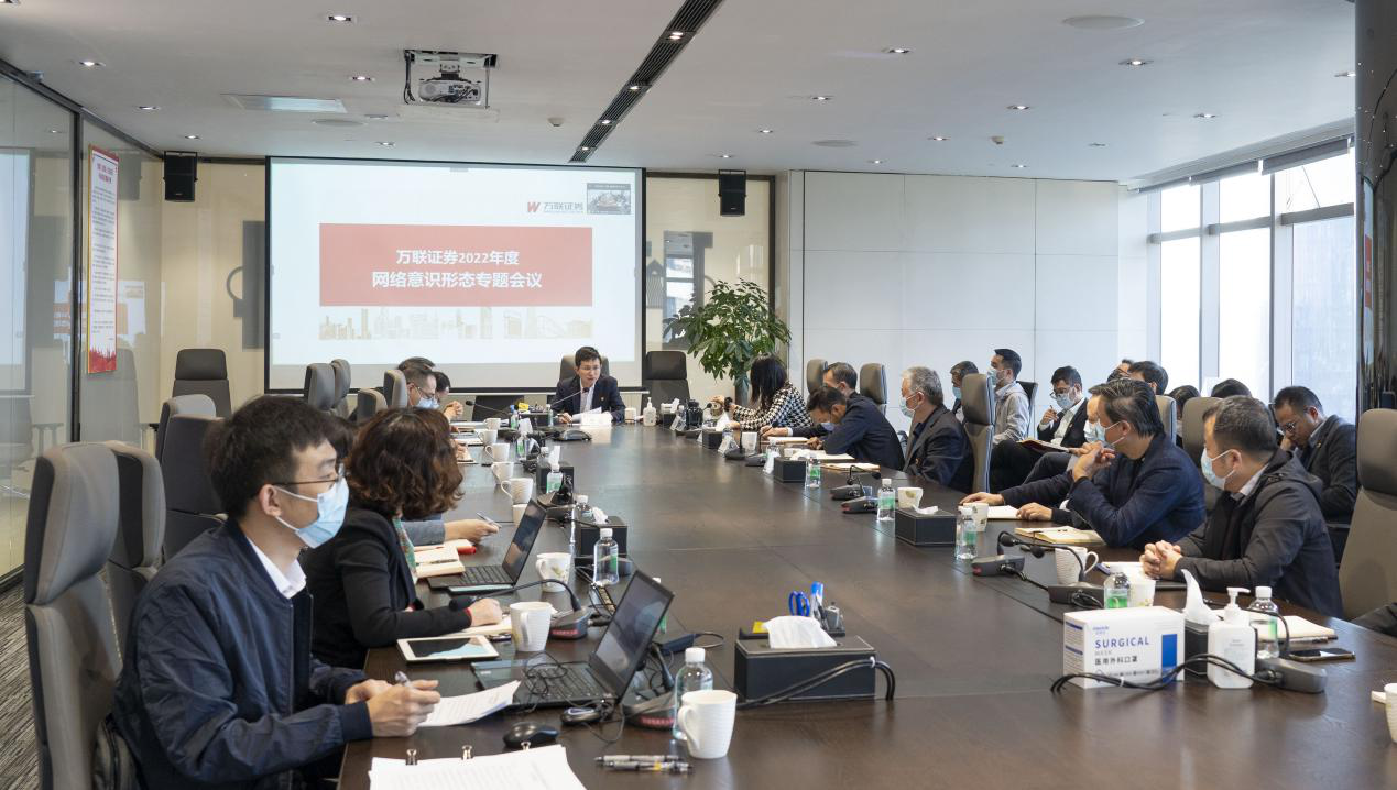 会议指出,抓好网络意识形态工作,事关公司发展的前途命运,无论是着眼大局贯彻新发展理念、构建新发展格局、推动高质量发展,还是聚焦万联实施“345”发展战略、打造湾区一流A类上市券商,都必须要把准网络意识形态斗争着力点,坚持正能量是总要求、管得住是硬道理、用得好是真本事,把握好安全和发展、开放和自主、管理和服务的辩证关系,打好打赢网络意识形态斗争主动仗。