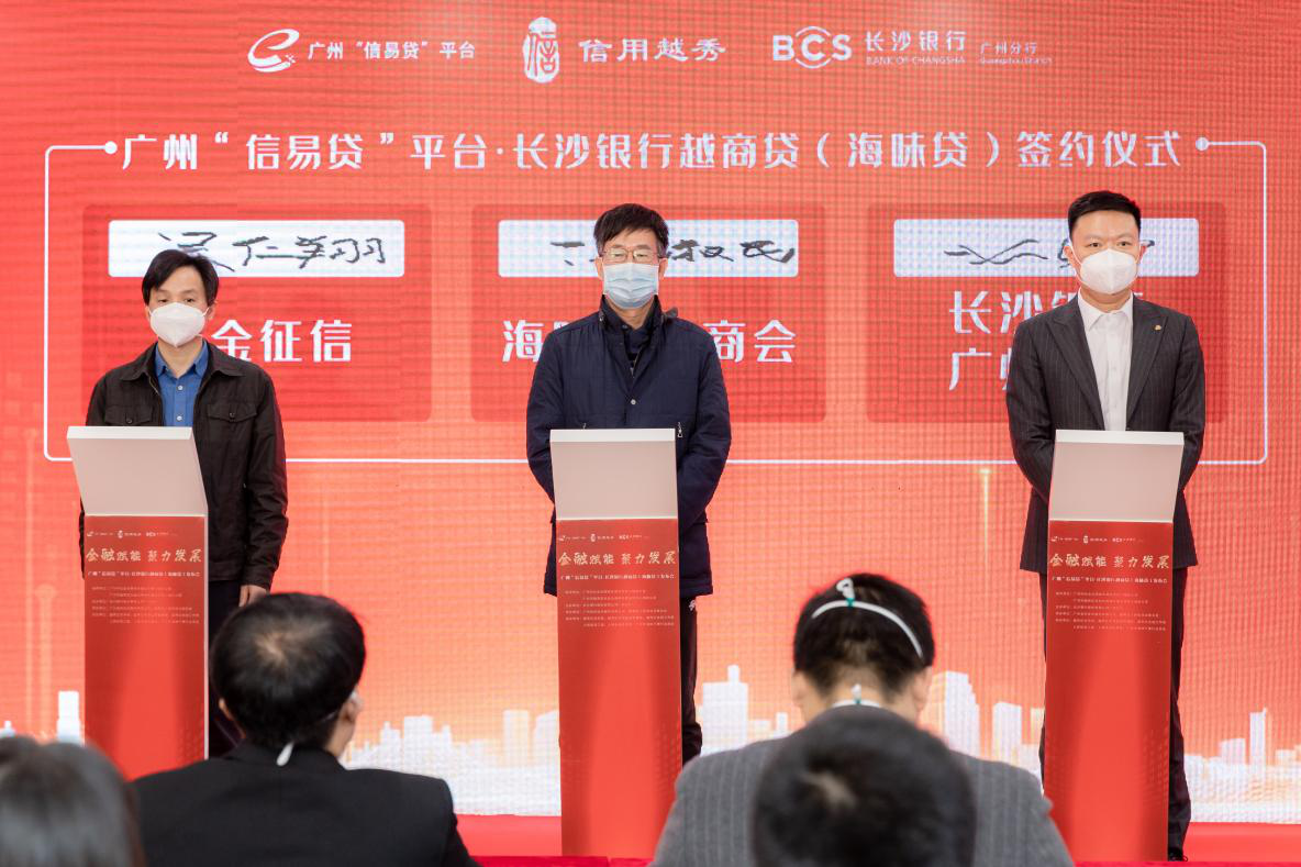 12月20日上午,由广州市信用办指导,越秀区信用办、商务局、市场监管局、ga黄金甲局、人民街以及长沙银行广州分行、广州“信易贷”平台、人民街商业联合会、海味干果行业商会联合举办的广州“信易贷”平台 · 越商贷(海味贷)发布会活动在星寰国际中心举行,广州“信易贷”平台与长沙银行、海味干果行业商会签订战略合作协议,为越秀区专业市场提供100亿专属贷款额度。