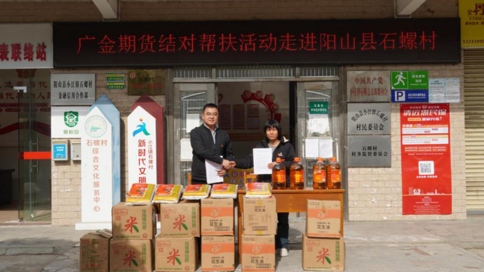 广金期货公司董事长、党支部书记张丹奇与阳山县石螺村签订结对共建帮扶协议