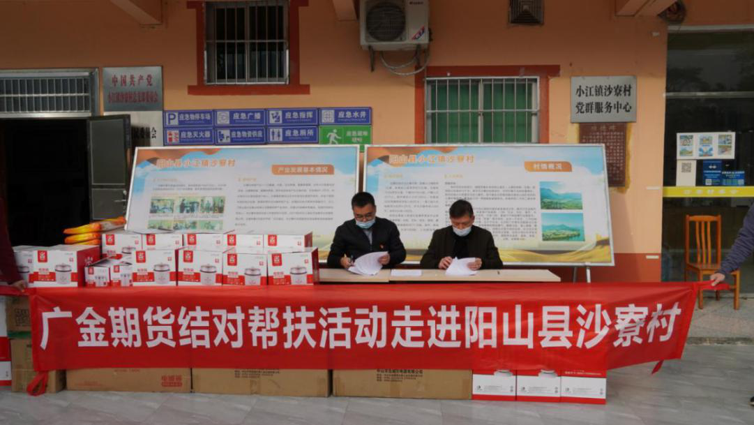 广金期货公司董事长、党支部书记张丹奇与阳山县沙寮村签订结对共建帮扶协议