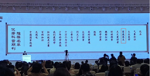 11月29日,第十八届中国科技期刊发展论坛开幕式在南京举办,公布了“优秀科普期刊”和“期刊优秀科普专栏”推荐名单。广州金控集团旗下《中国家庭医生》杂志社有限公司(简称家医杂志社)品牌期刊《家庭医生》成功入选“优秀科普期刊”推荐名单(共20家),是广东省唯一一家入选期刊。