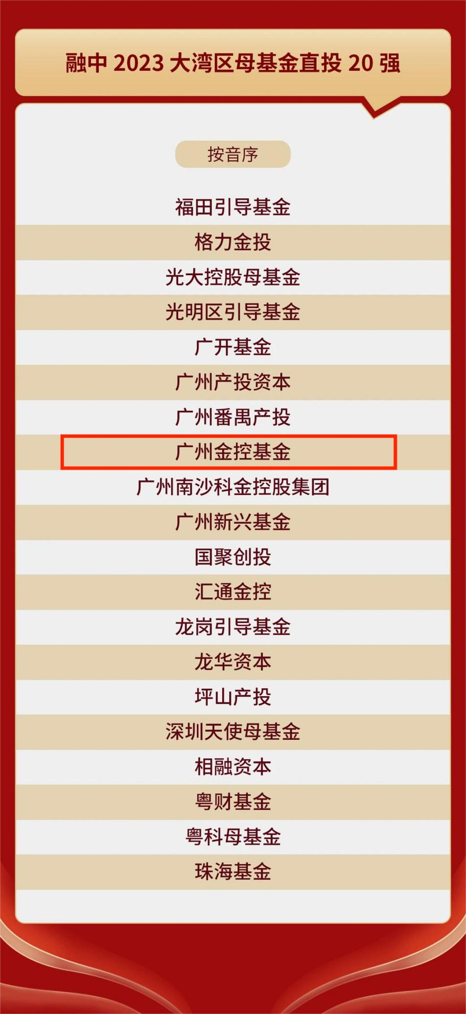 本次广州金控基金及受托管理的广州科技创新母基金荣登榜单,是对公司一直以来工作的肯定。在中国股权投资行业新的发展形势下,广州金控基金秉持初心,深入实施创新驱动发展战略,以实际行动积极履行基金管理人受托管理职责,切实发挥合作机构对激发广州创投市场活力和提高创新主体实力的带动作用,持续擦亮广州国际创投高地品牌,打造广州科技创新母基金优质生态圈。