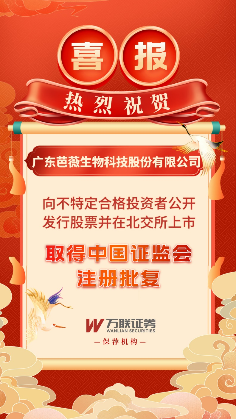 万联证券作为芭薇股份的保荐机构,秉承高效、专业的服务精神,全程参与了芭薇股份的尽职调查、规范辅导、北交所IPO申报、交易所反馈问询回复等各项工作,成功助力芭薇股份顺利获得注册批复。