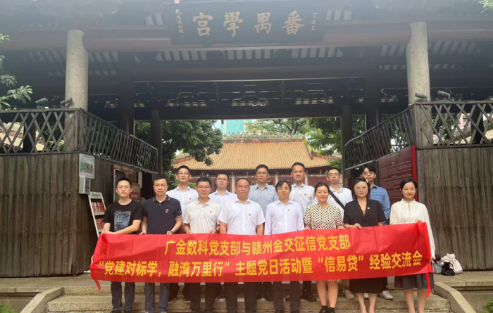 为深入学习习近平新时代中国特色社会主义思想,贯彻落实党的二十大会议精神,传承红色文化,培育和践行社会主义核心价值观,推动党建引领信用助力普惠ga黄金甲高质量发展,6月28日,广州金控集团旗下广金数科党支部与赣州金交征信党支部开展“党建对标学,融湾万里行”主题党日活动暨“信易贷”经验交流会。