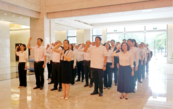 “我志愿加入中国共产党,拥护党的纲领,遵守党的章程,履行党员义务,执行党的决定,严守党的纪律,保守党的秘密,对党忠诚,积极工作,为共产主义奋斗终身,随时准备为党和人民牺牲一切,永不叛党。”在党旗前,党员们高声宣读入党誓词,铿锵有力、激情昂扬。庄严的誓词昭示初心力量、高亢的声音激昂奋进热情。广大党员纷纷表示,将恪守承诺,不忘初心、牢记使命,以昂扬的奋斗姿态助力集团高质量发展,再造一个新金控。