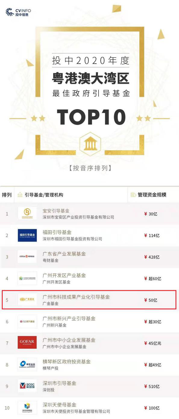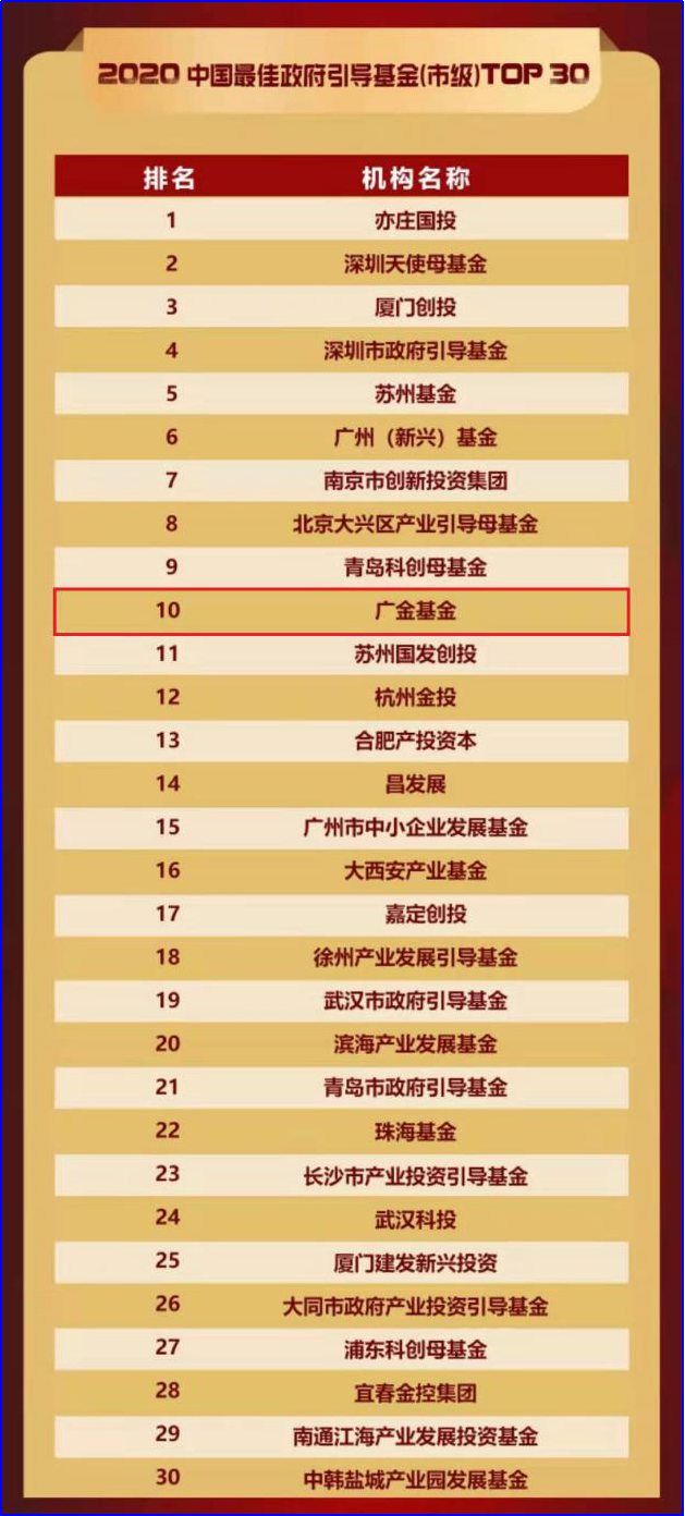 近日,广州金控旗下广州金控基金管理有限公司(下称广金基金)及其受托管理的政府引导基金入选2020中国母基金50人论坛通报表扬名单“2020中国最佳政府引导基金(市级)TOP30”以及投中信息2020年度粤港澳大湾区榜单“最佳政府引导基金TOP10”。