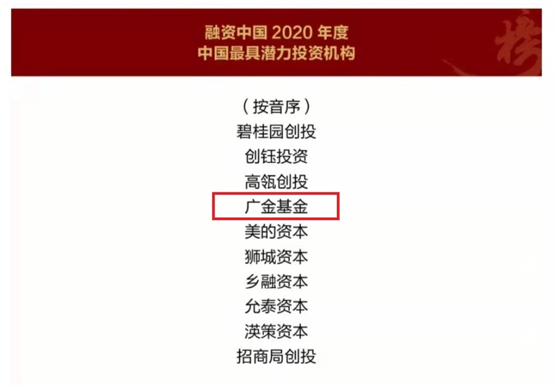 近日,融资中国2021(第十届)资本年会发布了2020年度股权投资领域九大综合榜单,广州金控旗下广州金控基金管理有限公司(下称广金基金)斩获“中国最具潜力投资机构”称号。
