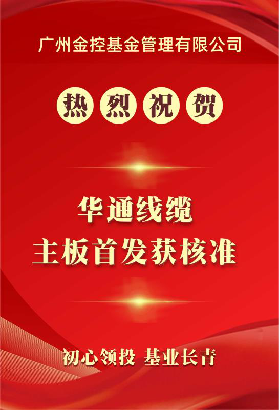 4月9日,中国证监会发布核发IPO批文,广州金控旗下广州金控基金管理有限公司(下称广金基金)投资企业——河北华通线缆集团股份有限公司(下称华通线缆)获得证监会首发核准,即将上市发行。