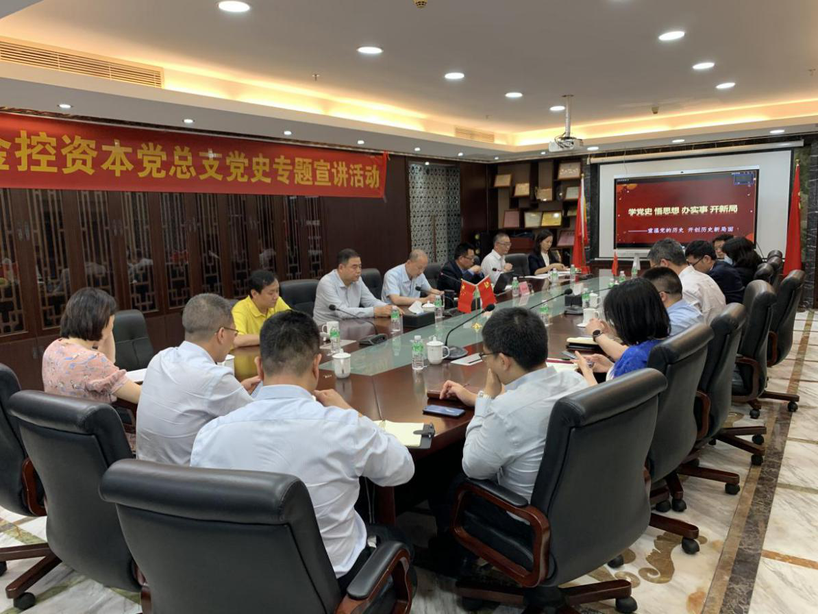 4月22日下午,广金资本党总支在公司大会议室开展党史专题宣讲活动,邀请中央党校中共党史博士、研究员,中央财经大学党委统战部常务副部长李跃新宣讲授课。宣讲活动由广金资本副总经理陈小军同志主持,广金资本本部及下属党组织全体党员和干部职工约200人参加,广金资本邀请广永国资党总支、广州再担保、广金期货、绿色金控等7个兄弟单位通过视频会议方式参与学习。