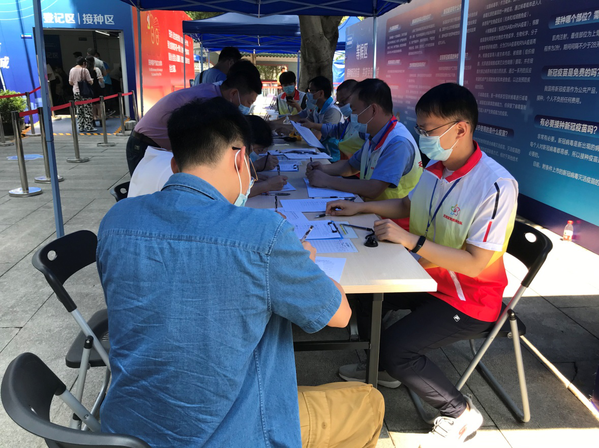 “这几天有没有感冒发热?”“是否正在服用抗生素?”“以前有没有过敏经历?”……健康排查台前,党员志愿者正在一遍遍地耐心询问着前来接种的群众。“留观30分钟,24小时内不要洗澡,多喝水、多休息,一周内不要饮酒”,接种完成的人员均收到这样的嘱咐。广州金控下属生物工程中心党支部以党史学习教育为契机,将“我为群众办实事”与新冠疫苗接种服务相结合,专门成立党员志愿服务先锋队到天河区石牌街道开展疫苗接种志愿服务。