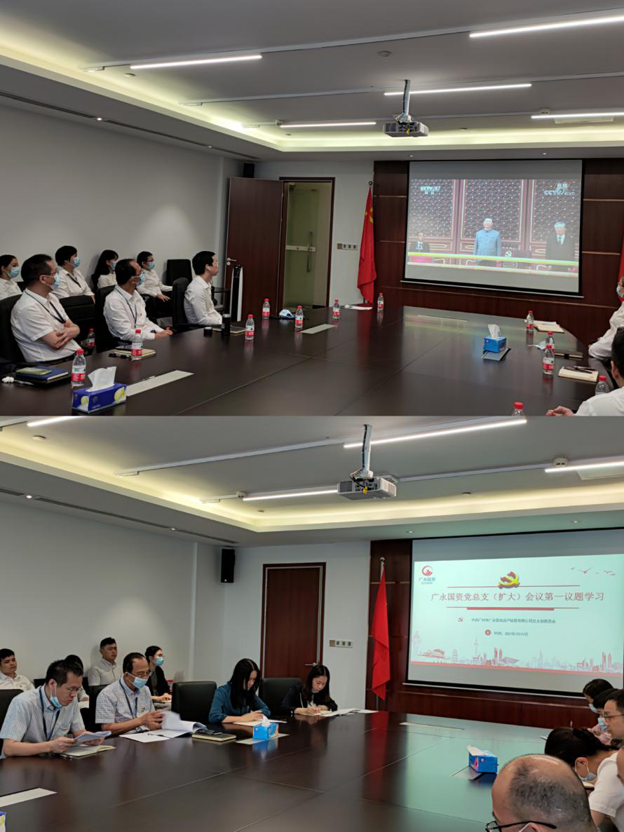 7月1日,广永国资党总支组织下属4个党支部共138名党员干部集中收看庆祝中国共产党成立100周年大会,共同聆听庄严宣告、回顾伟大成就、感悟建党精神、领会“九个必须”。当天下午,在广永国资党总支的部署安排下,各支部立即召开党员大会,组织专题学习和研讨,让情感进一步升华、思想进一步统一,迅速掀起学习习近平总书记重要讲话精神的热潮;公司党员干部结合思想和履职实际,围绕立足广州业务市场、支持民营小微企业、做大做强不良资产投资、做精做细资产管理、做优做专物业运营管理等内容,谈认识、讲体会、献良策,把学习“七一”重要讲话精神的成果转化为奋进新征程、建功新时代的实际行动。