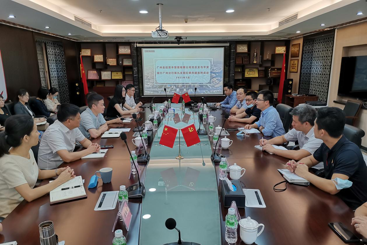 近日,广州金控集团下属广金资本党总支与结对共建单位平安银行广州分行第九党支部开展共建活动。活动由广金资本党总支委员、广金资本总经理刘新雨同志主持,双方业务及风控人员共37人参加。