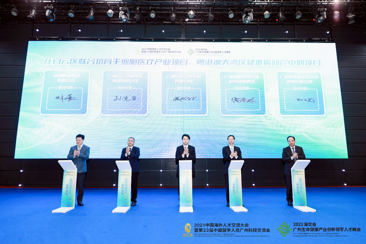 会上,生物工程中心、越秀区科技局、广州白云产业投资集团、鹏瑞集团、广东蓝岛生物技术有限公司、云舟生物科技有限公司、泰莱生物科技有限公司、《中国家庭医生》杂志社有限公司、广州市家庭医生在线信息有限公司等多家企业机构分别在建设粤港澳大湾区疑难病问诊中心、培育干细胞医疗产业、高发肿瘤大数据平台、非人灵长类基因治疗载体优化平台等生命健康产业领域的多个领先科创项目进行签约合作。