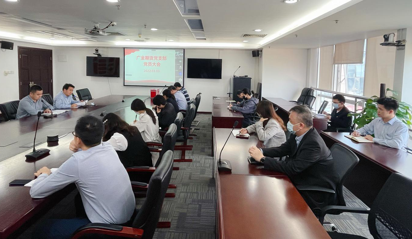 近日,广州金控集团下属广金期货召开党员干部大会,学习贯彻习近平总书记在省部级主要领导干部学习贯彻党的十九届六中全会精神专题研讨班开班式上的重要讲话精神。党支部组织委员主持会议,公司领导班子、中层干部、全体党员参加会议,分支机构参加线上会议。