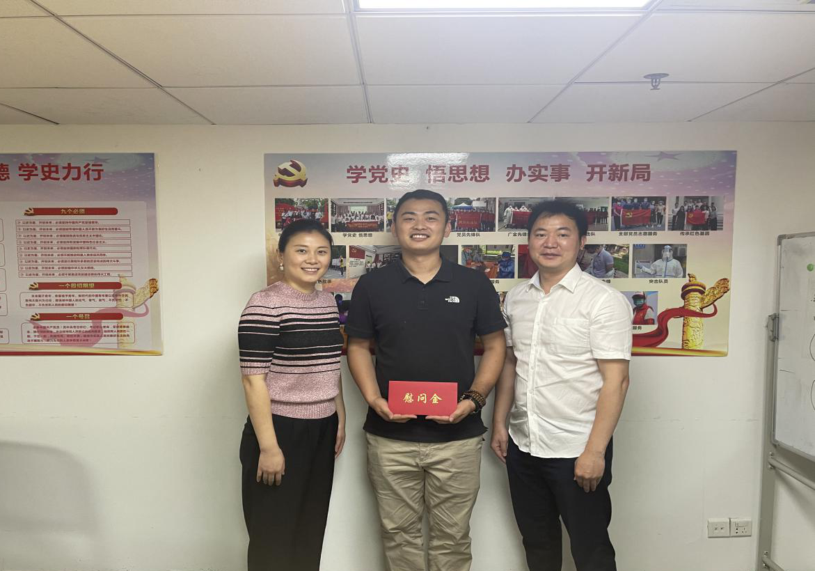 为贯彻落实集团党委“1+2+2+2+6”工作举措,持续推进“我为群众办实事”实践活动,进一步把驻镇干部、陆空口岸入境防疫保障工作专班干部的关心关爱落实落细落到位。6月1日上午,集团工会办受集团党委书记、董事长聂林坤委托,赴广州市公恒典当行有限责任公司实地走访慰问了参加广州陆空口岸入境防疫保障工作专班(已返岗)的干部张明朗,并以通讯方式,慰问了集团外派清远驻镇帮镇扶村工作队队员熊立华和广州陆空口岸入境防疫保障工作专班干部张汉文、王子铭,为他们送上工会“送温暖”关爱慰问金,同时工会主动了解掌握外派干部工作和生活上存在的困难,调动各方资源为其排忧解难。