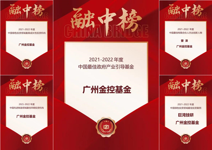 8月18日,融资中国“2021-2022年度中国产业投资榜”隆重揭晓,广州金控基金收获“中国最佳政府产业引导基金”“中国先进制造领域最佳早期投资机构”“中国绿色投资领域最具成长性投资机构”荣誉,公司总经理曾湋获评“中国最佳有限合伙人杰出创新人物”,投资项目巨湾技研获评“中国绿色投资领域最佳投资案例”。