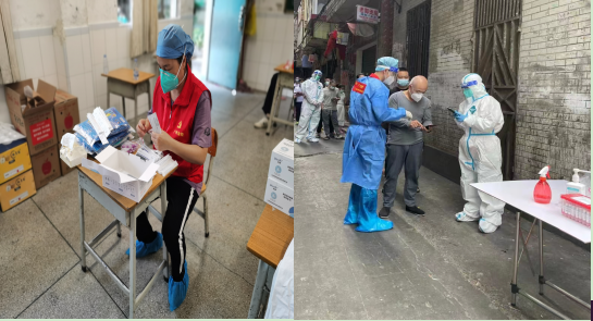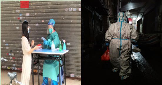 作为抗疫战场上的一名新兵,疫情发生后,她第一时间报名加入“广金先锋”志愿服务队,逆行出征白云区均禾街道罗岗工业区第一、二网格支援抗疫。支援期间,她每日与医护人员、核酸检测工作人员对辖区内孤寡老人、行动不便居民等特殊群体逐门逐户开展核酸检测,做到应检尽检。穿上防护服的她,不敢多喝水,不敢上厕所,衣服被汗水浸湿,依旧咬紧牙关坚持着,认真完成每一次核酸采样工作。被问到是否担心被感染时,何稳萍微笑着说:“没想那么多。”
