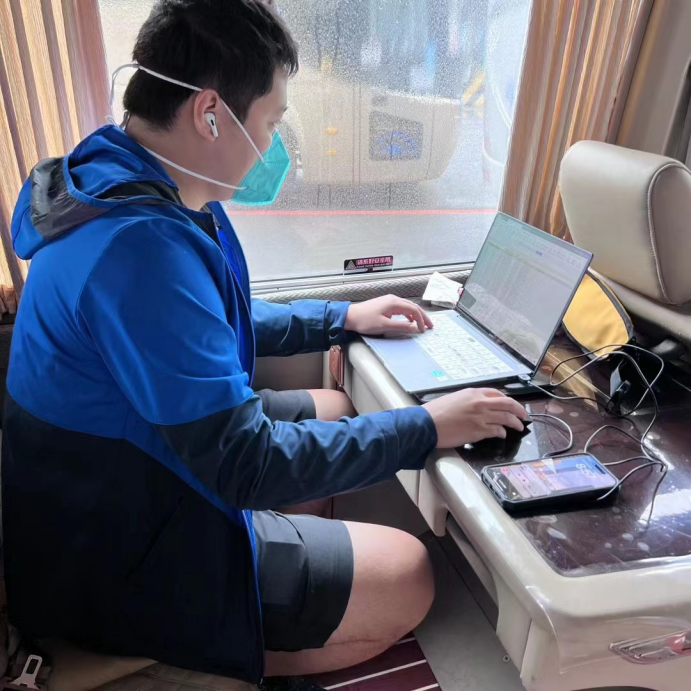 下午,突击队全员出动,按照上午规划好的任务名单进行分工,开展上门服务工作。队员们早已对网格内的道路熟记于心,穿着“大白”灵活穿梭于各个居民楼,迅速完成“爬楼”任务。在队长杨凯桓的组织带领下,队员们紧密配合,充分发挥平常工作中收集整理数据的专业优势,结合多天支援经验,不断优化执行任务方式,积极向街道提供疏解工作的改进建议,工作效率的提升,让仅有10名队员的突击队每天能完成200多户居民的上门核酸采样及物资配送工作。