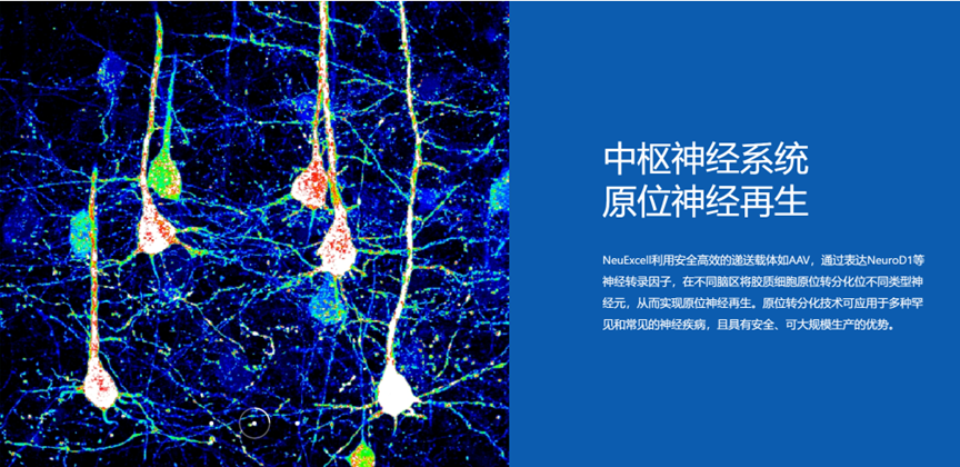 NeuExcell神曦生物打造了全球领先的原位神经再生技术平台,是基于陈功教授团队开创性的原位胶质细胞向神经元转分化研究,利用AAV等载体表达神经转录因子,将内源性星形胶质细胞原位直接转化为长期有功能的神经元,从而达到神经修复的作用。NeuExcell神曦生物的产品管线涵盖了主要的神经损伤和神经退行性疾病,例如脑卒中、脑胶质瘤、亨廷顿舞蹈症、渐冻症、阿尔茨海默症、帕金森病、创伤性脑损伤、脊髓损伤和眼科疾病等。该核心技术也已获得了国际知名药企罗氏制药旗下的Spark Therapeutics认可,达成了1.9亿美金的合作开发协议,利用公司创新的技术平台共同开发亨廷顿舞蹈症的治疗药物,目前Spark已经独立重复出原位转分化的结果,会加速往临床方向推进。