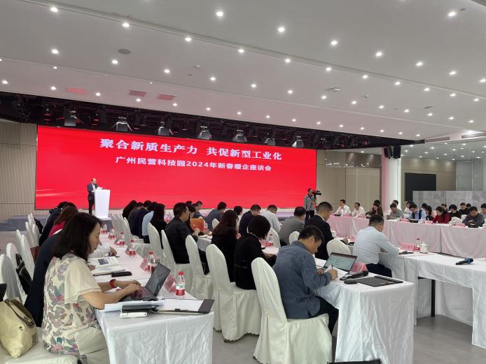 由广州民营科技园组织,广州金控集团旗下万联证券白云分公司和广州市融资再担保公司共同支持的2024年新春暖企座谈会,于近日成功举办。市工商联副局级干部李洁明、白云区政协党组书记袁东华、市工信局领导、区相关职能部门领导、万联证券白云分公司、广州市融资再担保公司等专业服务机构以及民科园30家龙头企业代表等方面出席本次座谈会。本次会议深入学习贯彻党的二十大精神和习近平总书记视察广东重要讲话、重要指示精神,落实省、市、区高质量发展大会部署要求,与企业家、行业专家共谋发展策略,凝聚发展合力,推动整合科技创新资源,加快形成新质生产力,共促新型工业化高质量发展。