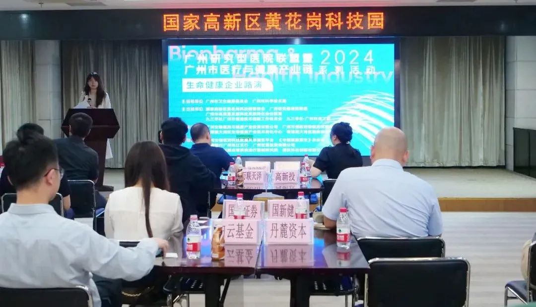 近日,由广州市卫生健康委员会、广州市科学技术局指导,国家高新区黄花岗科技园管委会、广州研究型医院联盟、广州市高质量发展科技成果转化金谷联盟、九三学社广州市促进技术创新工作委员会、广州九三科创之家支持下,广州金控集团旗下广州生物医药与健康投资有限公司(以下简称“广州健康产投”)在黄花岗科技园成功举办广州研究型医院联盟暨广州市医疗与健康产业链2024系列活动——生命健康企业路演。