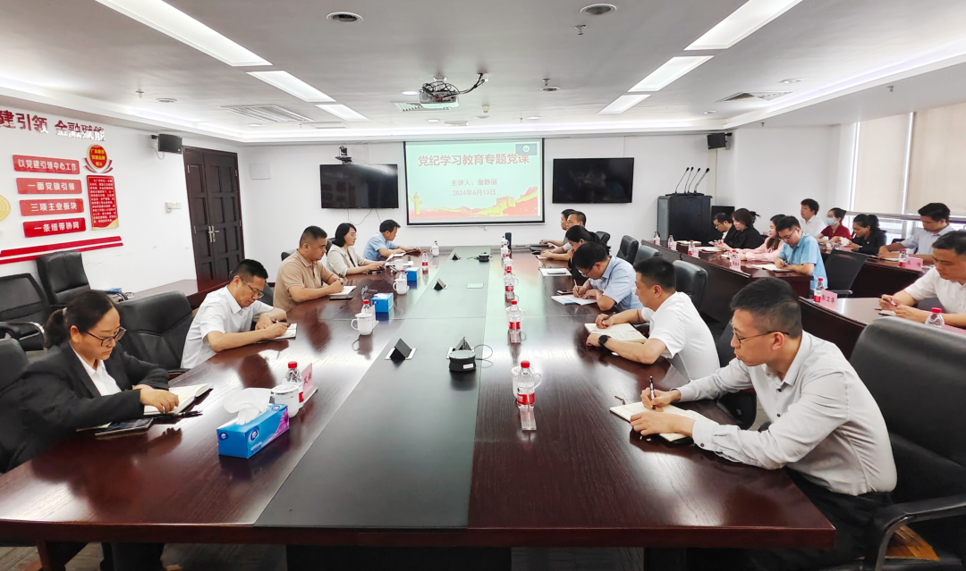 为深入学习贯彻习近平总书记关于党纪学习教育的重要讲话和重要指示精神,贯彻落实广州金控集团党委关于开展党纪学习教育的工作部署,按照公司党纪学习教育工作安排,为进一步增强公司党员干部的党纪意识,学纪、知纪、明纪、守纪,强化党员干部党性观念、纪律意识和廉洁从业意识,筑牢防腐拒变思想防线,6月13日下午,集团旗下广金期货党支部副书记、总经理詹静丽同志为党员干部进行党纪学习教育专题培训,公司党员干部近50人参加。
