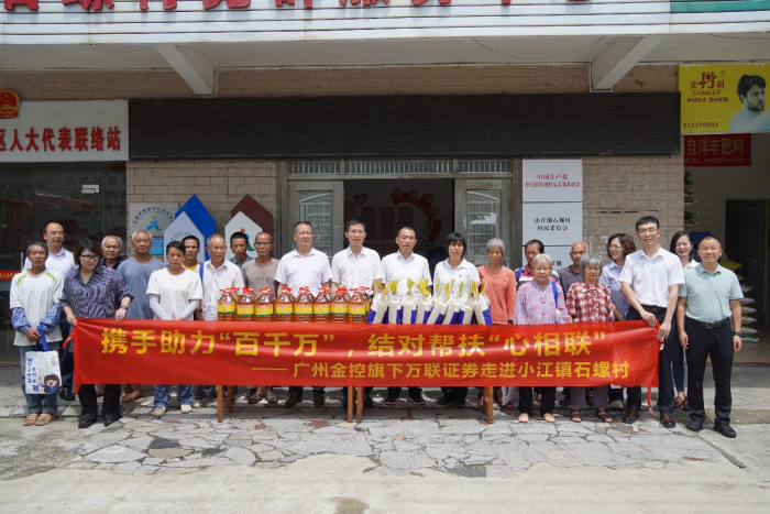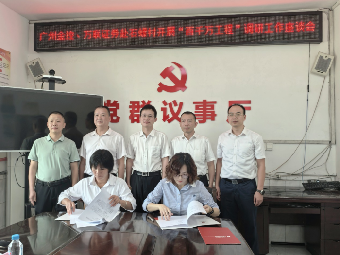 在石螺村,调研组开展了“携手助力‘百千万’结对帮扶‘心相联’”活动,与县镇村领导进行交流座谈,举行了共建签约仪式,在双方领导的见证下,广州金控集团旗下万联证券与石螺村签订了党组织结对共建协议与定向捐赠协议,将为石螺村路灯安装工程、村民饮用水改善提升工程、校车候车站点建设工程等新一批帮扶项目出资助力,解决村民“急难愁盼”问题。万联“红扣子”志愿服务队也走进石螺村为村民送上财商教育课,提醒村民如何辨别非法ga黄金甲活动,帮助村民提升风险防范能力,维护自身合法权益。最后,王达为石螺村困难群众逐一送上慰问物资。