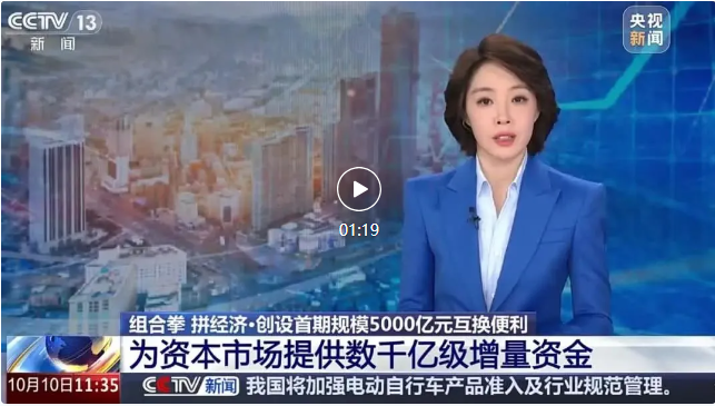 10月10日早间,中国人民银行发布公告,决定创设“证券、基金、保险公司互换便利”,首期操作规模5000亿元,即日起接受符合条件的证券、基金、保险公司申报。广州金控集团旗下万联证券围绕政策重点,出镜央视《新闻直播间》,进行了政策的宣贯解读。