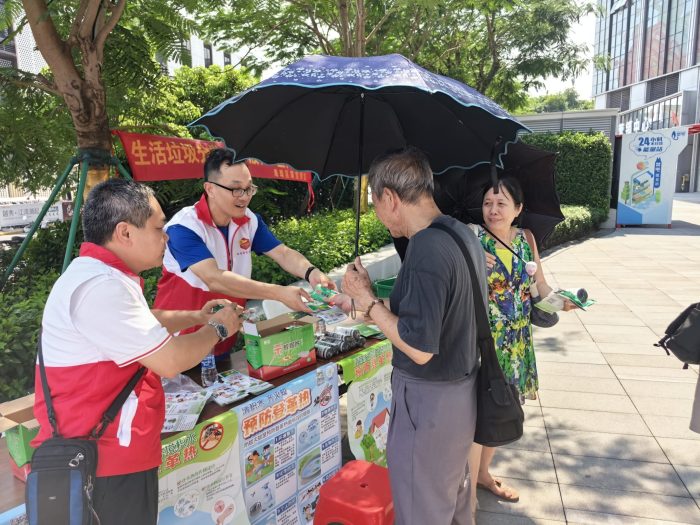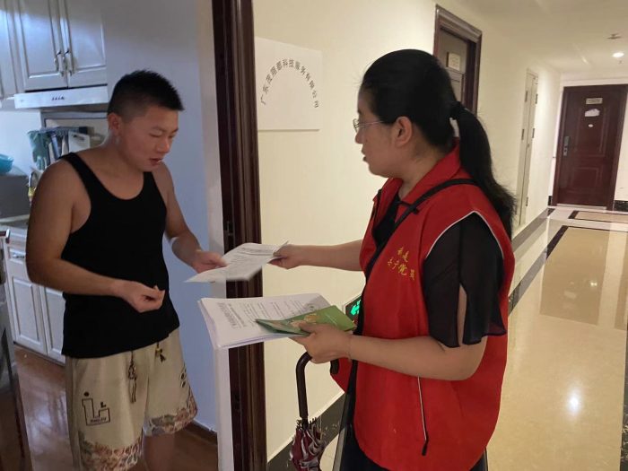 在下沉社区服务中,广州金控集团“广金先锋”党员干部化身 “防控志愿者”,分工协作、高效行动。在天河区枫叶社区、海珠区大干围社区、荔湾区吉祥社区等地的“广金先锋”志愿者们通过发放科普手册、张贴海报、逐户上门统计信息等方式,向居民普及蚊媒传染病的传播途径及预防措施,重点针对积水容器清理、防蚊用品使用等知识进行详细指导,提高群众的自我防护意识和能力。在发放灭蚊片时,党员志愿者还特别提醒居民:“预防叮咬是第一道防线,若出现发热、皮疹等症状,务必及时就医并告知可能的蚊虫接触史。”居民们纷纷排队过来领取科普手册及防蚊产品,并为“广金先锋”志愿者们点赞。