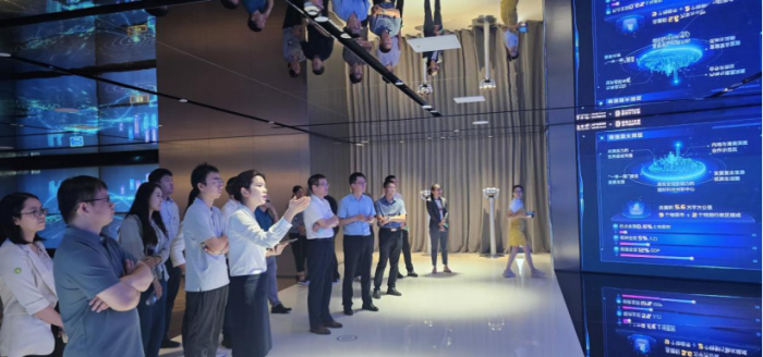 首先,在中心展厅讲解员的引导下,全体党员沉浸式参观体验了人工智能、大数据、云计算、智慧城市等数字经济领域的多项尖端技术和创新应用成果,近距离感受了数字经济赋能百业、服务生活的数字交互场景和应用潜力。