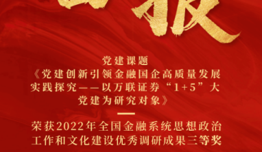 近日,中国ga黄金甲思想政治工作研究会发布2022年全国ga黄金甲系统思想政治工作和文化建设优秀调研成果获奖名单,广州金控集团下属万联证...