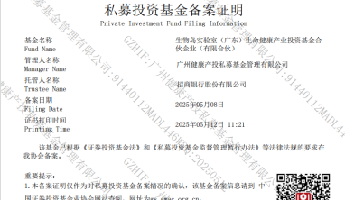 5月8日,广州金控集团旗下广州健康产投私募基金管理有限公司(以下简称健康产投基金)管理的首支基金——“生物岛实验室(广东)生...